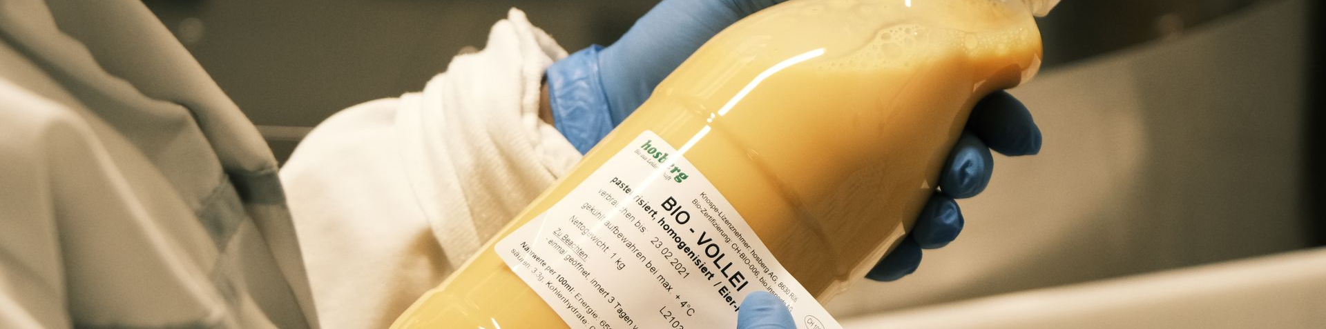 Dank unserer modernen Aufschlag- und Pasteurisationsanlage verarbeiten wir unsere Produkte besonders schonend. Dadurch sind sie lange haltbar und mit Sicherheit frei von Salmonellen. Je nach Kundenwunsch können wir Zusätze wie Salz, Zucker oder Gewürze beimischen und steigern so die Effizienz bei weiteren Verarbeitungsschritten. Veränderungen gehören zu unserem Alltag und wir haben jeden Tag die Möglichkeit, etwas Gutes noch besser zu machen. Und: Unsere Eier sind für alle. Durch die unterschiedlichen Verpackungsgrössen sprechen wir ein breites Zielpublikum an.
